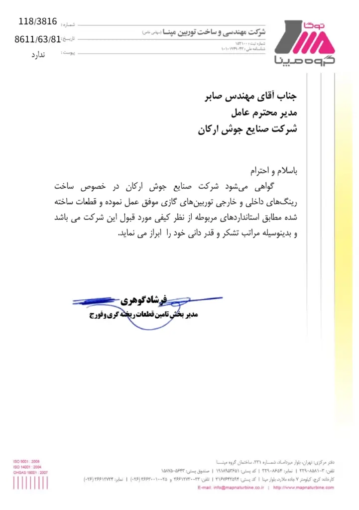تقدیر نامه توگا 3 توسط صنایع جوش ارکان 26 شهریور 1403 5 شهریور 1403 تقدیر نامه و تائیدیه ها پست قبلی واحد نمونه سال 1400 پست بعدی تقدیر نامه توگا 5